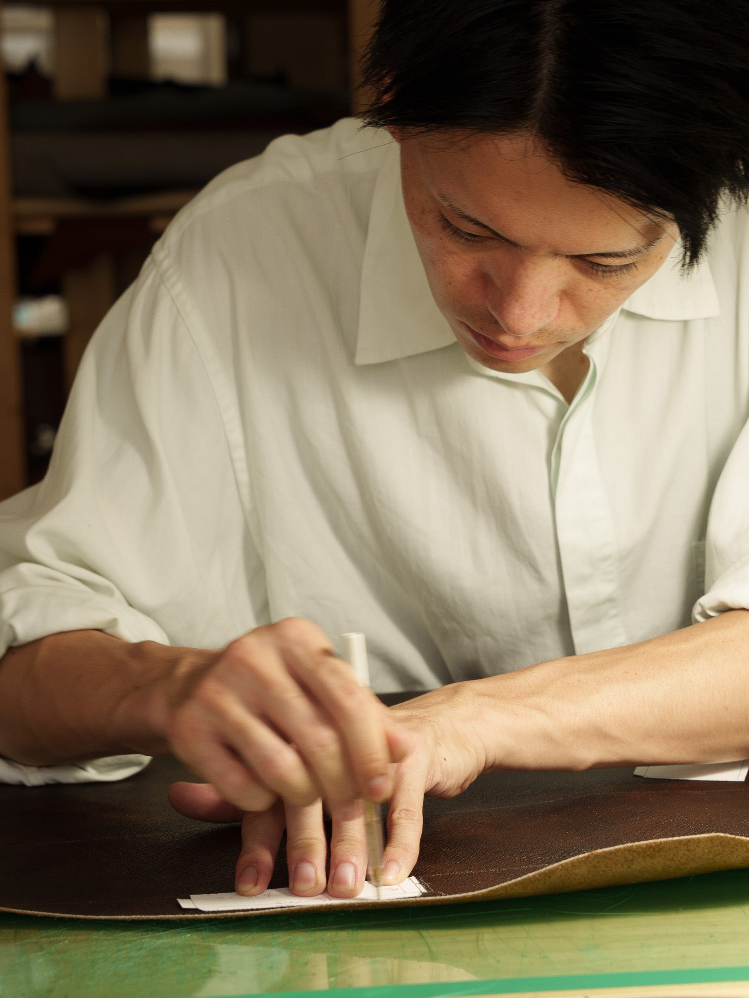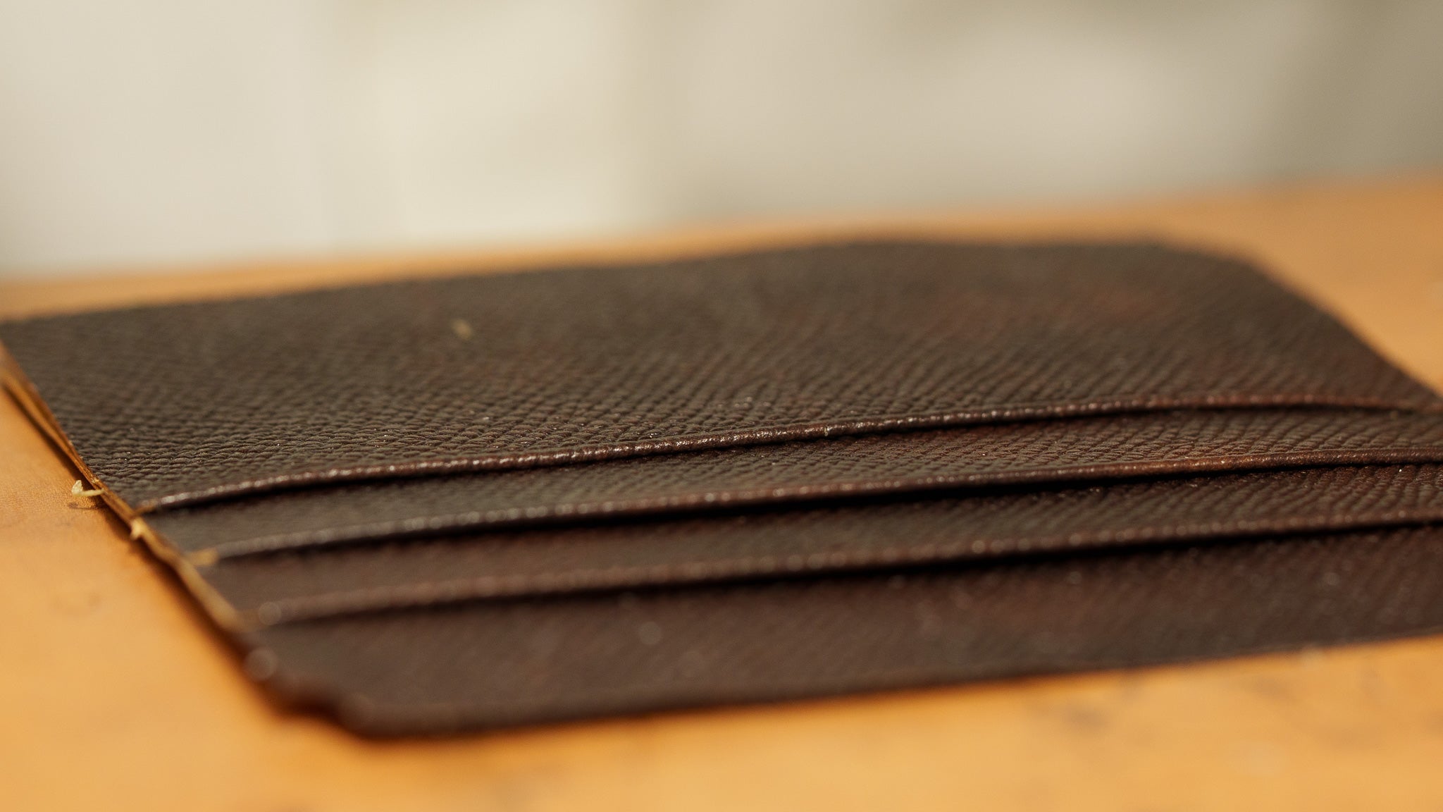 A bifold wallet made in dark brown grained calfskin from "Ilcea", a Italian tannery.